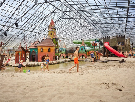 Regenachtig weer? Geen probleem! De kinderen waren niet weg te slaan uit het SterrenStrand: een overdekt zandstrand met water, speeltoestellen en glijbanen. Ouders kunnen ondertussen relaxen met een kop koffie in het aangrenzende café.